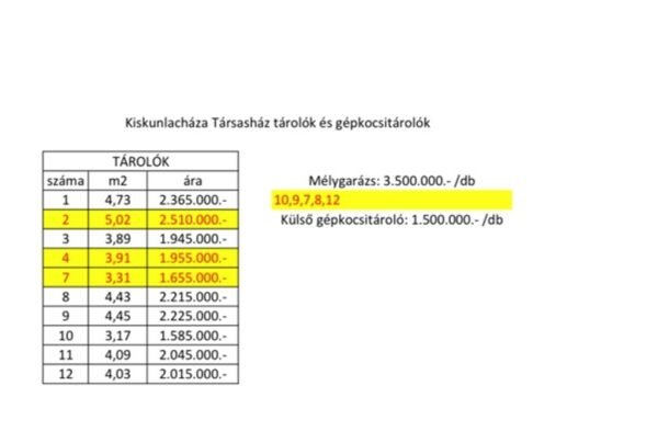 tárolók: 12 db. tároló különböző ár és négyzetméter-ben vásárolhatok.