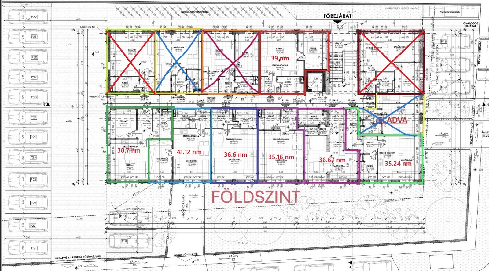 A társasházban 31 lakás került kialakításra különböző négyzetméterekkel.